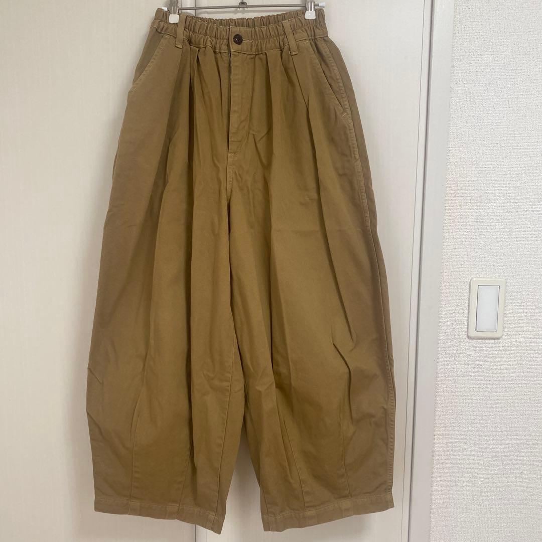 chaos カオスきれいめな印象のチノパンツChaosのドレス系トラウザースをベースに作成したシルエット。フロントに2タックが入り、ヒップ周りとワタリにはゆとりがあります。裾に向けてはほんの少し膝の辺りからストレートにしてセンタープレスを入れる事により、チノ素材ながらもカジュアルな仕上げにならない様に意識して作り込みました。スタイリング的にもオールカジュアルにするよりも、レースものを合わせたり、綺麗目なシャツを合わせたりとドレスアップして着用するのがおすすめです。定価 42,900円試着のみ■カラーベージュ 着用画像は今年デザインのものです。色味はワントーン明るいベージュになります。10,11枚目が近いお色です。■サイズ 38ウエスト 36ヒップ 56股上 31股下 72わたり 35裾幅 22H.S ATTIRE(H.S アトリエ) BEAMS(ビームス) Bshop(ビショップ) TOMORROWLAND(トゥモローランド) UNITED ARROWS(ユナイテッドアローズ) 中川政七商店 ナチュラルランドリー ヤンマ産業 サバタム リンネル 快晴堂 エヴァムエヴァ アーツアンドサイエンス ヤエカ マーガレットハウエル グリン ツムグ ネストローブ ヒューマンウーマン エボニーアイボリー セントジェームス イチ prit Nîmes ルミノア ダントン APC bshop ホームスパン ダナファヌル yuni MHL ミナペルホネン fog linen work LE GLAZIK 45rpm パラスパレス BLANCbasque ヘブンリー クロス&クロス 北欧暮らしの道具店 マリンフランセーズ イエナ mizuiro ind veritecoeur ORCIVAL YARRA 08Mab などお好きな方にオススメです。